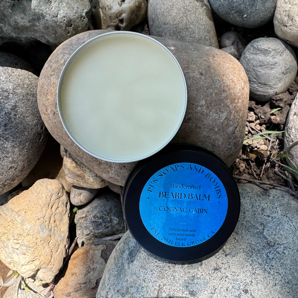 Cognac Cabin Beard Balm, Handcrafted Small Batch Men’s Grooming, Woodsy & Conditioning