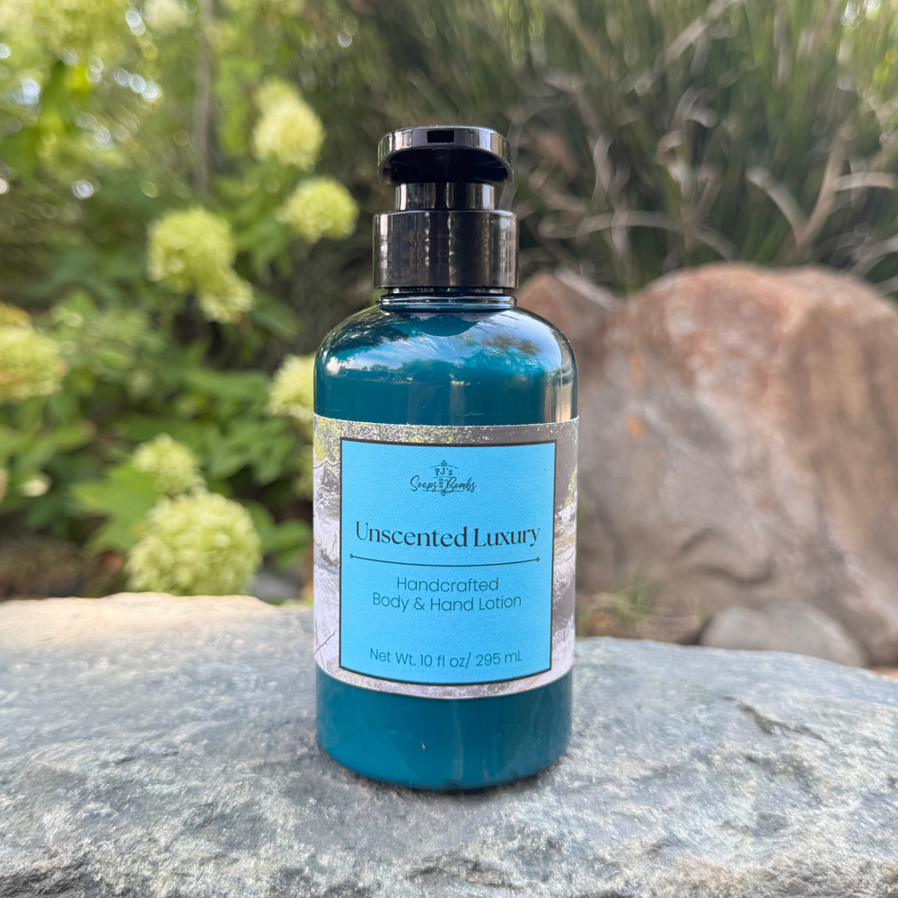 PJ's Unscented Luxury Handcrafted Body Lotion – Non-Greasy, Moisturizing, Cruelty-Free Skincare, 10 ounces