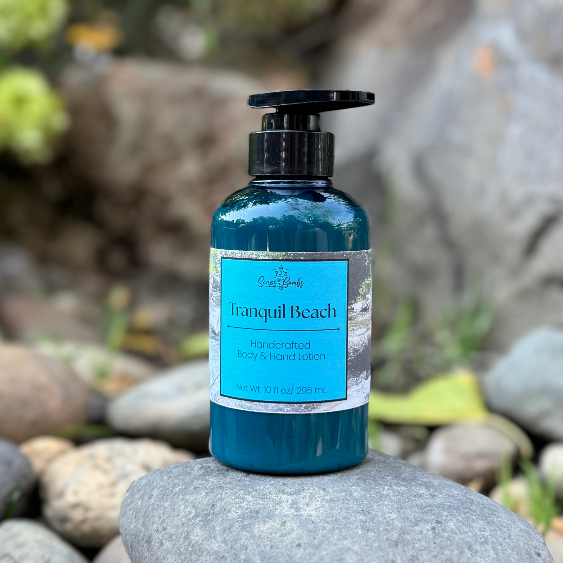 PJ's Tranquil Beach Handcrafted Luxury Body Lotion – Non-Greasy, Moisturizing, Cruelty-Free Skincare, 10 ounces